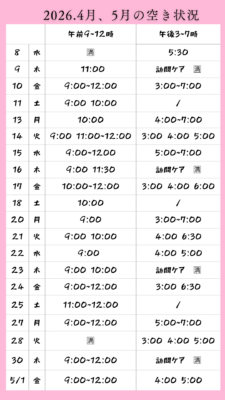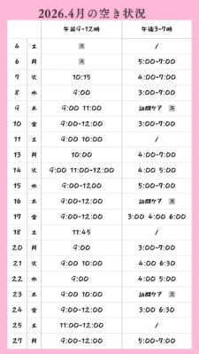 月.火.水.木,金曜日 9:00~12:00(受付終了) 15:00〜19:00(受付終了) 土 9:00~12:00(受付終了) |