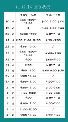 11.12月のご予約空き状況