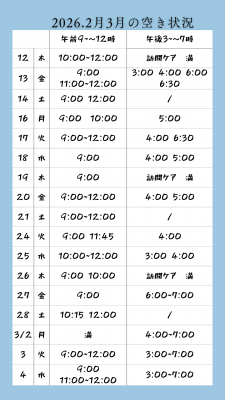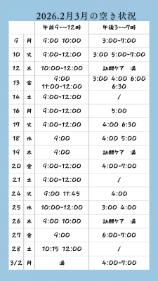 2026.2月3月のご予約空き状況