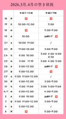 月.火.水.木,金曜日 9:00~12:00(受付終了) 15:00〜19:00(受付終了) 土 9:00~12:00(受付終了) |